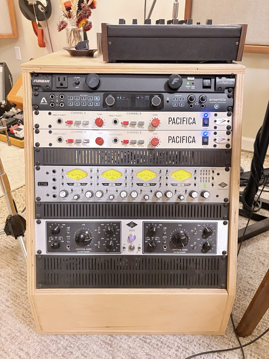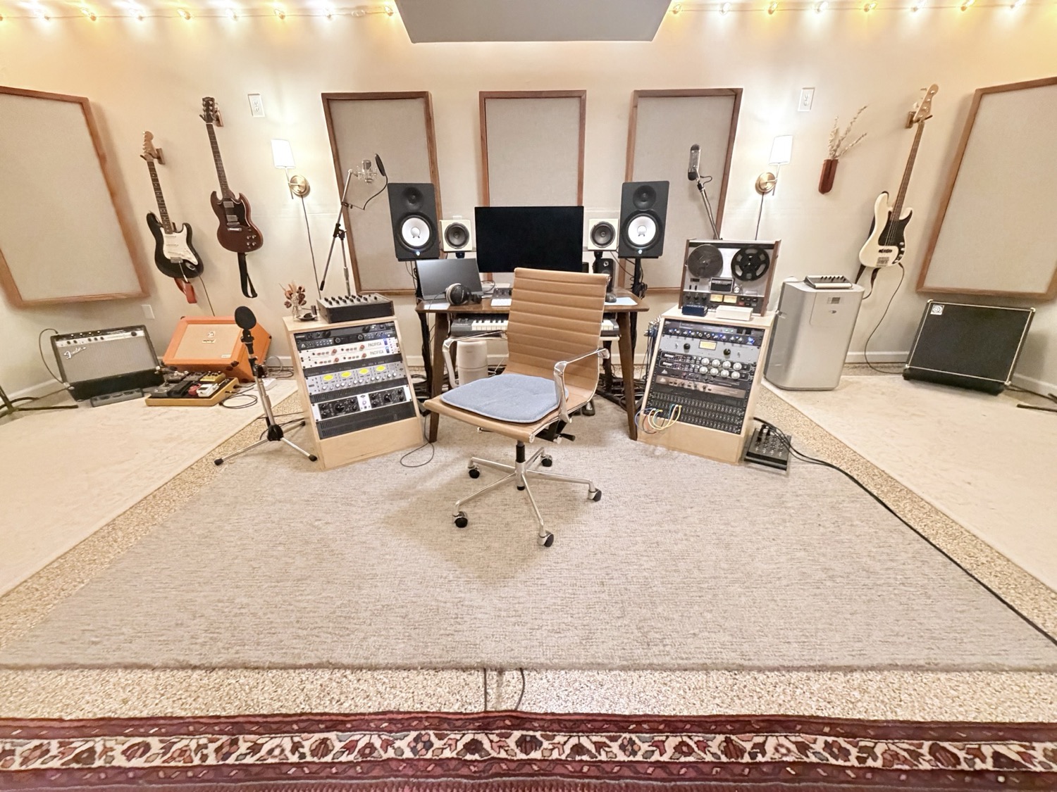 Gear is important but only a means to an end. I've collected a variety of classic instruments, amps, mics, preamps, and compressors so that we can find the perfect tone. (See my gear list below.) While I love to take the time to explore different tones, my experience enables me to select great-sounding signal chains from the start so that sessions can run efficiently and the emphasis can be on the music. I aim for the engineering to be invisible and run seamlessly in the background.