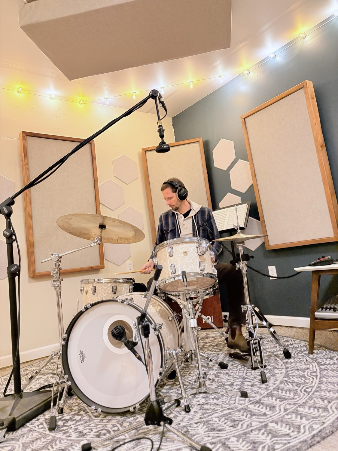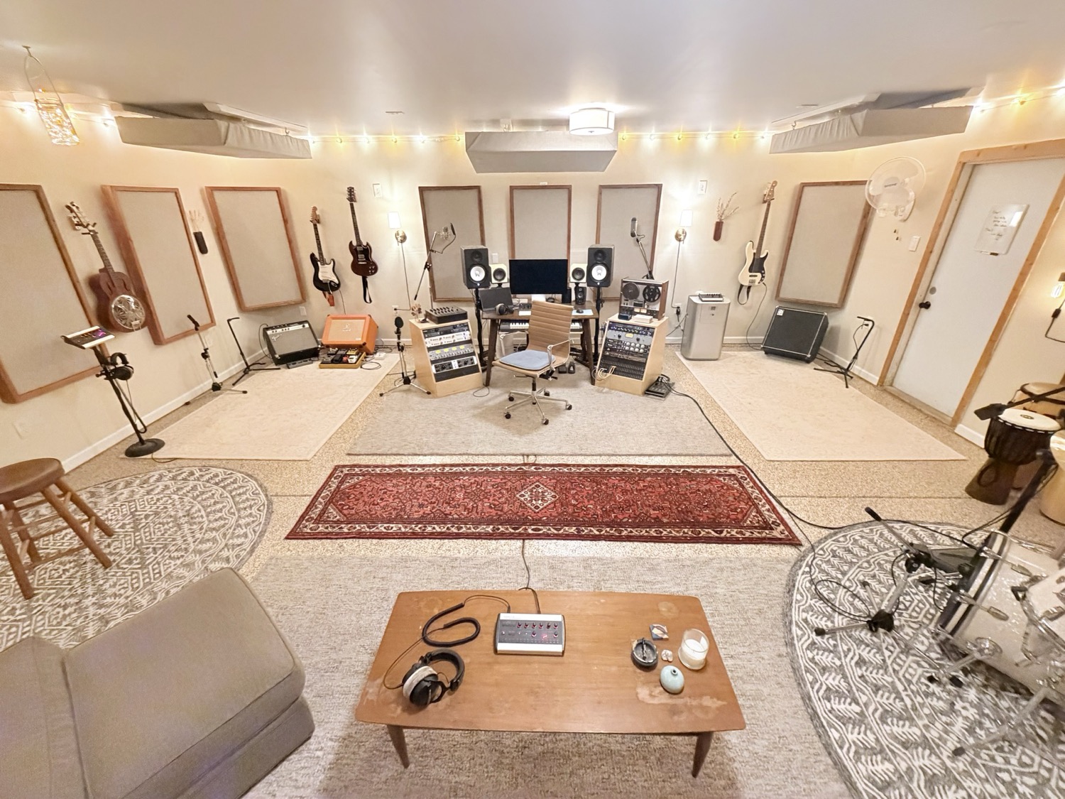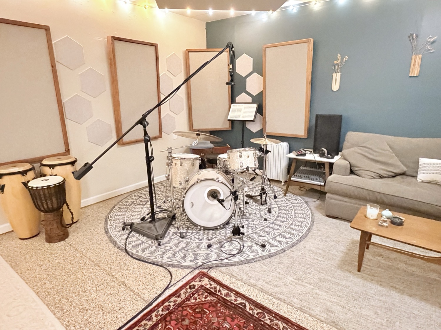 My recording space is in the Redwoods across the road from the Russian River. It's a one-room studio that has living-room vibes. It's cute, welcoming, cozy, and earthy. The goal is to have artists feeling relaxed.
